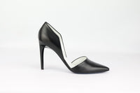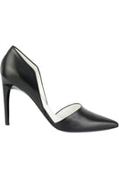 - Made from black leather with d'orsay cutout silhouette and pointed toes.