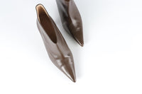 Rejina Pyo Brown Leather Ankle Boots. Brown. Slips on. Does not come with - dustbag or box. EU 38 (UK 5, US 8). Insole: 10.75 in. Heel Height: 2.5 in.