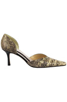 - These d'orsay pumps by Rickard Shah are a classic style that will never date, made in Italy from brown and cream lizard, they have pointed toes and comfortable 63 mm heels to take you from morning meetings to dinner with friends.