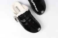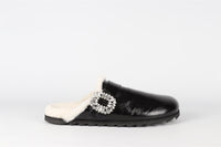 ROGER VIVIER BLACK CRYSTAL AND PATENT LEATHER SLIPPERS EU 40 UK 7 US 10