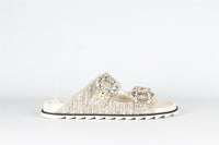ROGER VIVIER GOLD CRYSTAL AND TWEED SANDALS EU 40 UK 7 US 10
