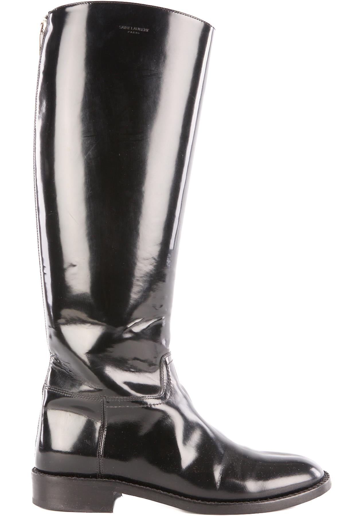 • Saint Laurent Black Patent Leather Knee High Boots.