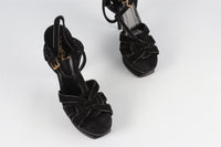 SAINT LAURENT BLACK TRIBUTE SUEDE PLATFORM SANDALS EU 38.5 UK 5.5 US 8.5