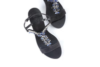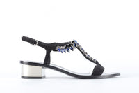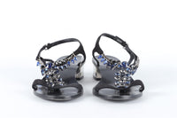 SALVATORE FERRAGAMO BLACK CRYSTAL AND SUEDE SANDALS EU 37.5 UK 4.5 US 7.5