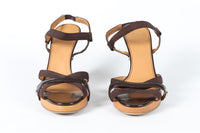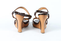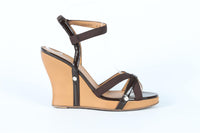 SALVATORE FERRAGAMO BROWN LEATHER WEDGE SANDALS US 9 UK 6 EU 39