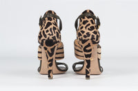 SERGIO ROSSI GREEN CALF HAIR AND LEATHER SANDALS EU 37.5 UK 4.5 US 7.5