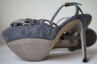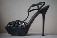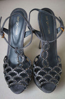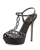 SERGIO ROSSI SCALLOPED CRYSTAL T-STRAP PLATFORM HEELS EU 38 UK 5 US 8