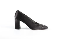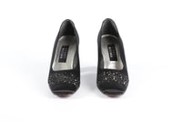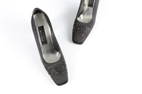 Stuart Weitzman Black Satin Pumps. Black. Slips on. US 7 (UK 4, EU 37). Insole: 10 in. Heel Height: 3.2 in.