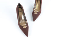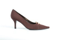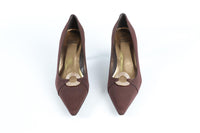 Stuart Weitzman Brown Satin Pumps. Brown. Slips on. US 7 (UK 4, EU 37). Insole: 10 in. Heel Height: 2.7 in.