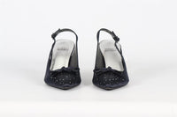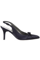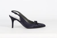 Stuart Weitzman Crystal And Satin Slingback Pumps. Navy. Slips on. Does not come with - dustbag or box. EU 37 (UK 4, US 7). Insole: 9.5 in. Heel Height: 4 in.