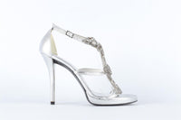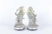 STUART WEITZMAN SILVER CRYSTAL AND LEATHER SANDALS EU 37 UK 4 US 7