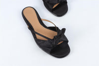 The Row Black April Satin Sandals. Black. Slips on. EU 39 (UK 6, US 9). Insole: 10 in.
