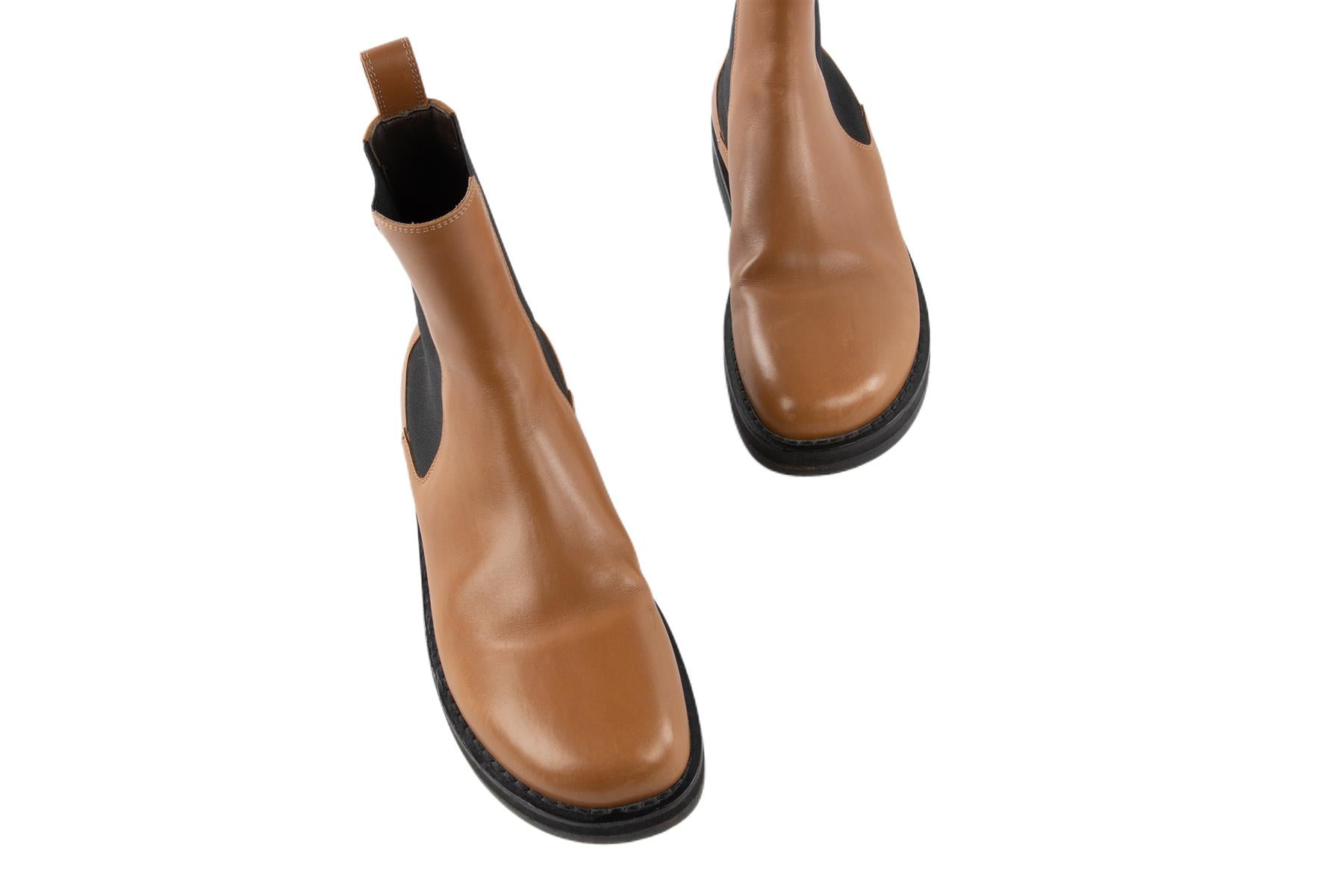 THE ROW TAN GAIA LEATHER ANKLE BOOTS EU 38 UK 5 US 8