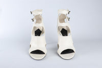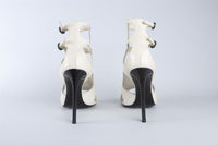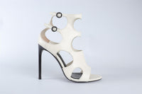 Tom Ford White Leather Sandals. White. Buckle fastening - Side. Does not come with - dustbag or box. EU 37 (UK 4, US 7). Insole: 9.2 in. Heel Height: 4.2 in.