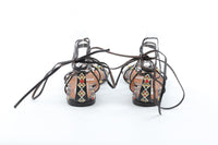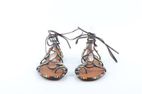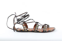 Valentino Black Leather Sandals. Black. Tie fastening - Front. Comes with - dustbag. EU 37.5 (UK 4.5, US 7.5). Insole: 10 in. Heel Height: 0.9 in.