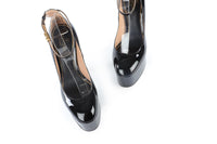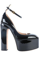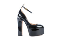 Valentino Garavani Black Patent Leather Platform Pumps. Black. Buckle fastening - Side. Does not come with - dustbag or box. EU 38.5 (UK 5.5, US 8.5). Insole: 10 in. Heel Height: 6 in.