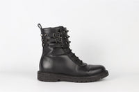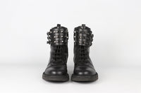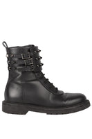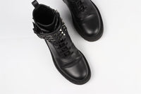 Valentino Garavani Black Rockstud Leather Ankle Boots. Black. Lace up fastening - Front, Zip and buckle fastening - Side. Does not come with - dustbag or box. EU 37 (UK 4, US 7). Insole: 9.5 in. Heel Height: 1.5 in.