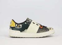 - Valentino Garavani's low-top sneakers have been made in Italy from multicoloured floral-print leather in a classic tennis-shoe silhouette, they feature white rubber strips at the back with 'Rockstuds' and have partially concealed laces.