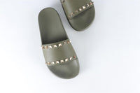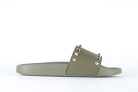 VALENTINO GARAVANI GREEN ROCKSTUD RUBBER SLIDES EU 38 UK 5 US 8