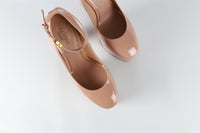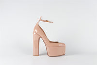 Valentino Garavani Nude Tan-Go Patent Leather Platform Pumps. Nude. Buckle fastening - Side. EU 38 (UK 5, US 8). Insole: 10 in. Heel Height: 6 in.