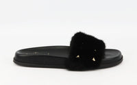 VALENTINO GARAVANI ROCKSTUD MINK FUR SLIDES EU 38.5 UK 5.5 US 8.5
