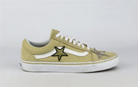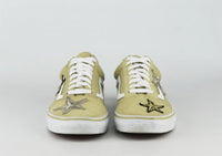 - Vans' 'Old Skool' sneakers are immediately recognizable thanks to the sculptural side stripes, made from durable canvas, soft suede and glossy leather, this beige low-top pair have also been customised with embroidered stars.