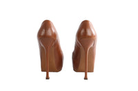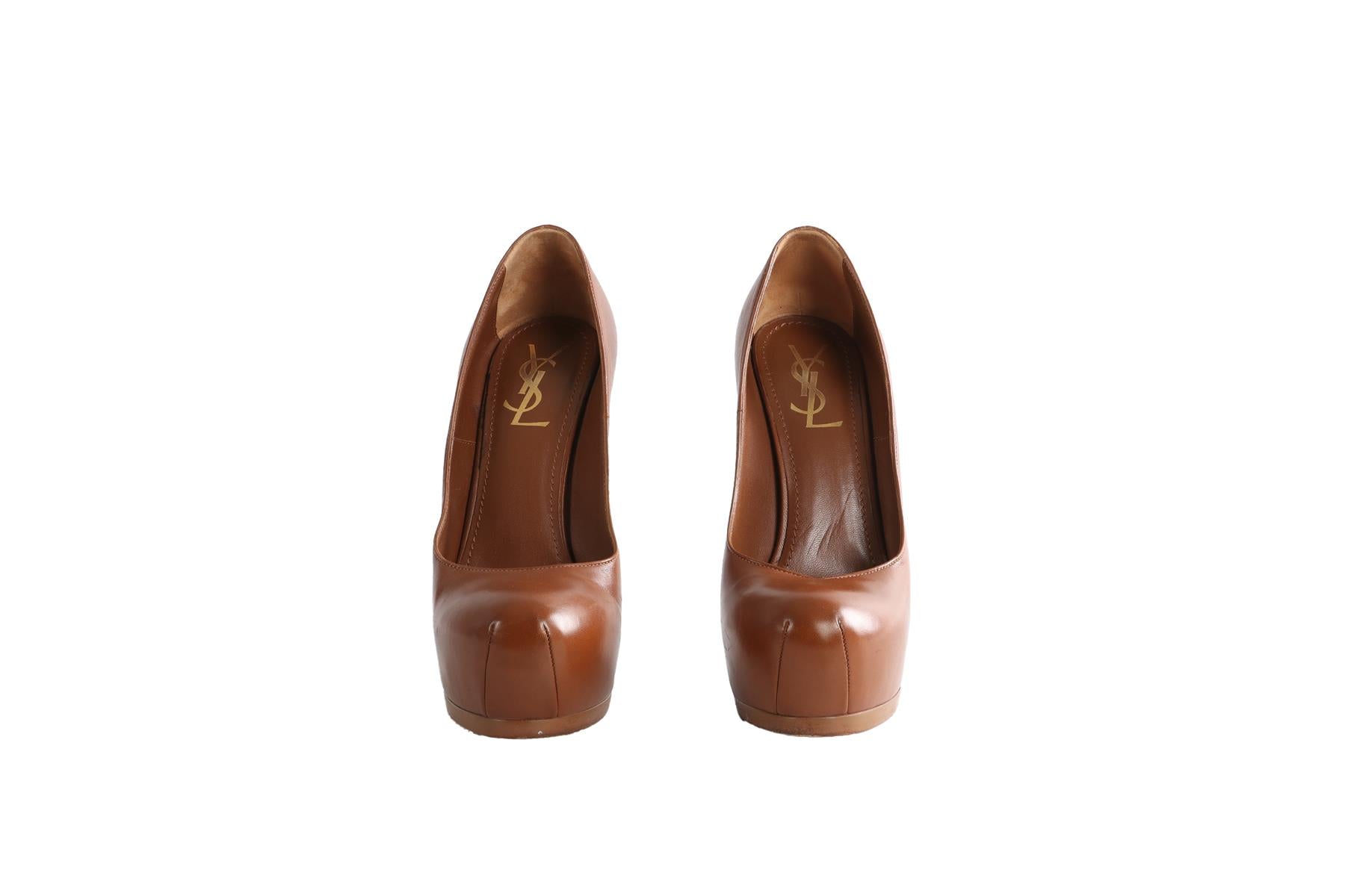 • Yves Saint Laurent Brown Leather Platform Pumps.