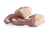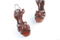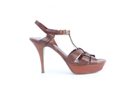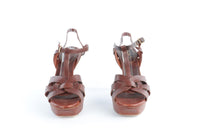 YVES SAINT LAURENT BROWN LEATHER PLATFORM SANDALS