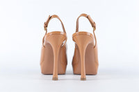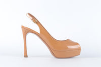 Yves Saint Laurent Brown Patent Leather Slingback Sandals. Brown. Buckle fastening - Side. Does not come with - dustbag or box. EU 37.5 (UK 4.5, US 7.5). Insole: 9.5 in. Heel Height: 4 in.