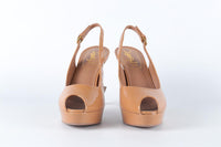 YVES SAINT LAURENT BROWN PATENT LEATHER SLINGBACK SANDALS EU 37.5 UK 4.5 US 7.5