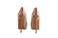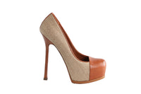 YVES SAINT LAURENT TAN CANVAS PLATFORM PUMPS EU 38.5 UK 5.5 US 8.5