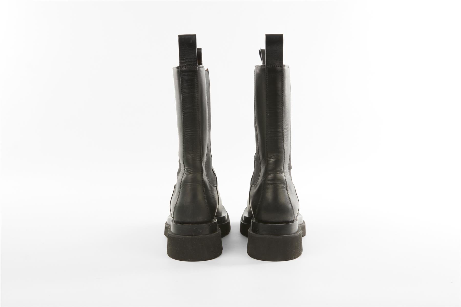 Bottega Veneta Black Lug Leather Ankle Boots. Black. Slips on. Comes with - dustbag and box. EU 36 (UK 3, US 6). Insole: 8.25 in. Heel Height: 1.5 in.
