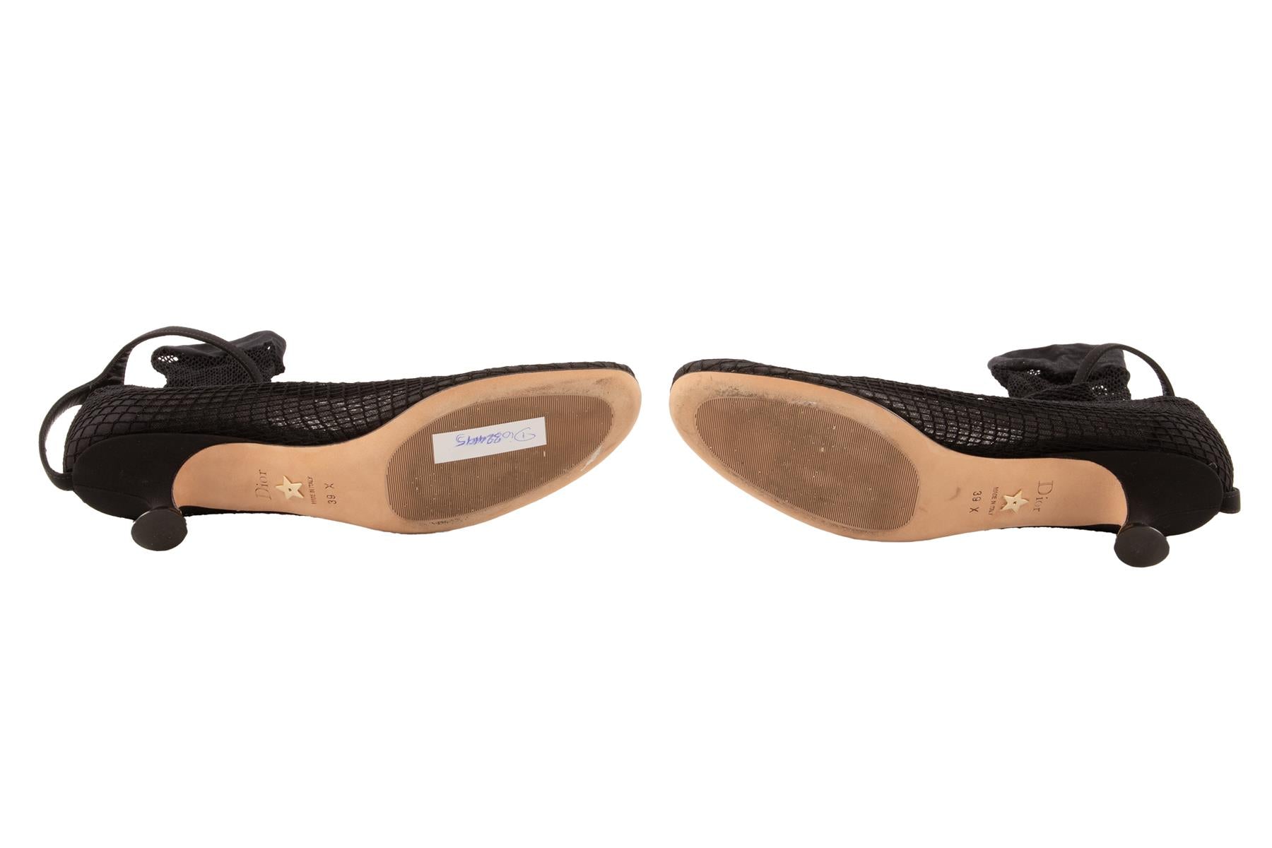 Christian Dior Black Mesh Knee High Boots. Black. Buckle fastening - Side. Comes with - dustbag. EU 39 (UK 6, US 9). Insole: 10 in. Heel Height: 2 in.