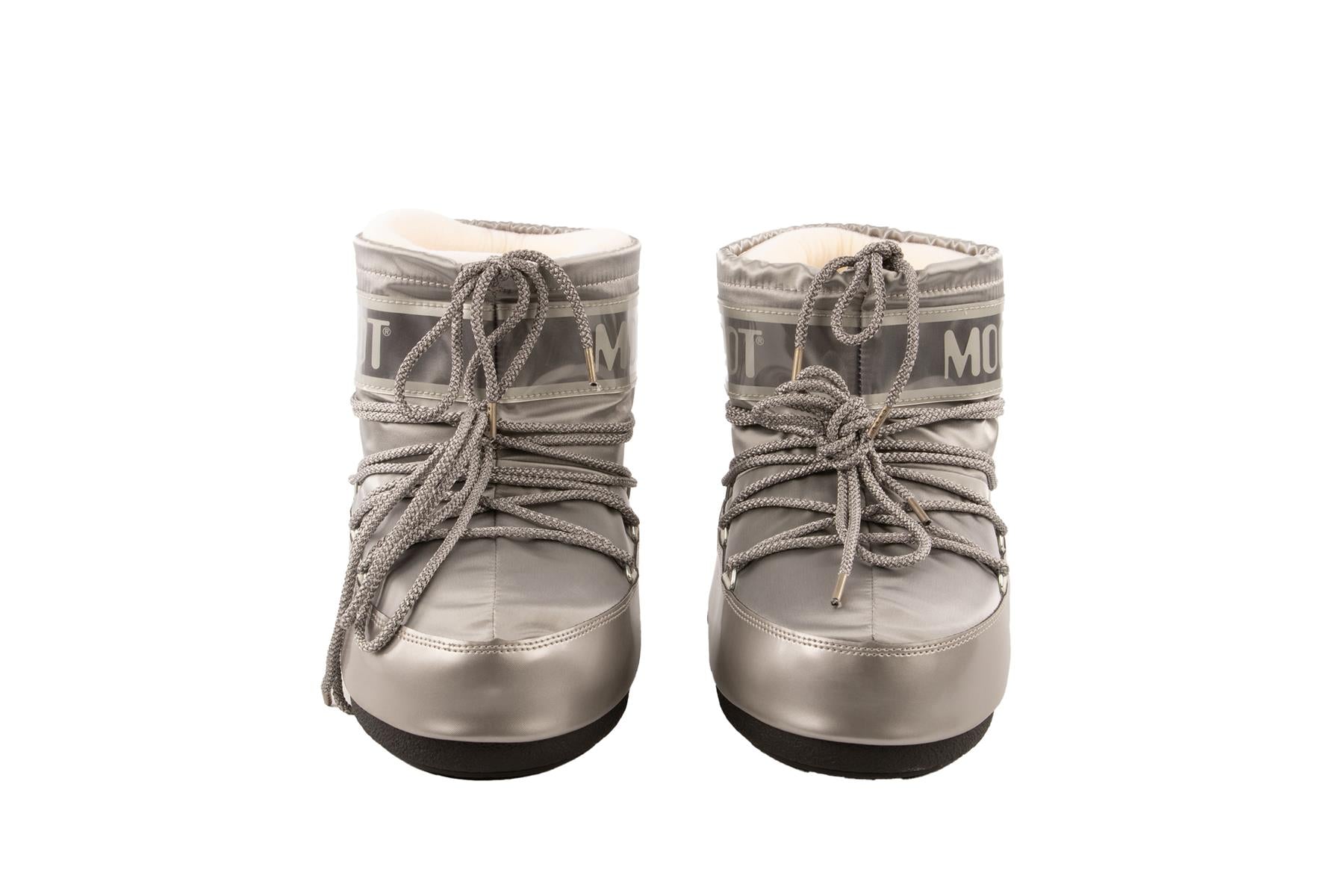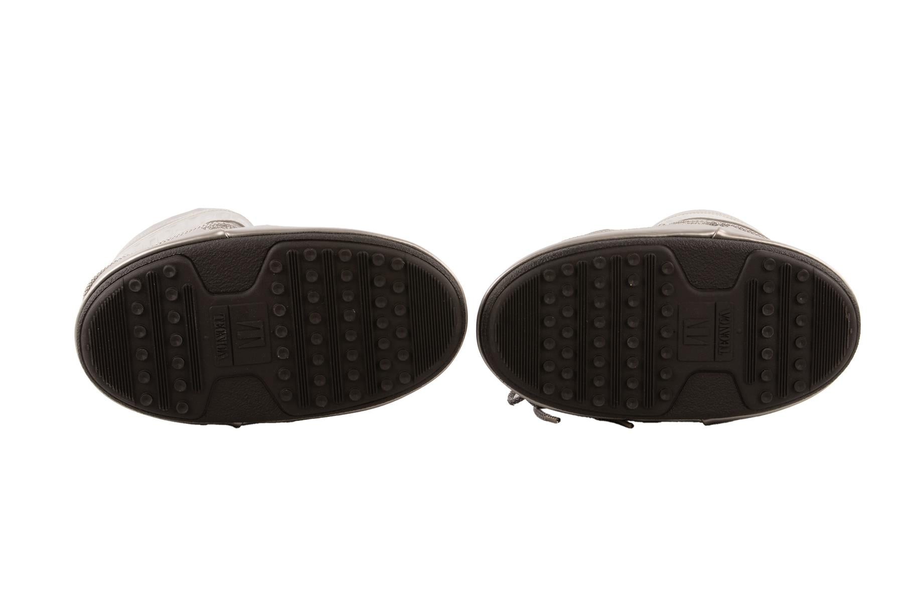 Moon Boot Silver Shell Boots. Silver. Tie fastening - Front. Does not come with - dustbag or box. EU 39-41 (UK 6-8, US 9-11).