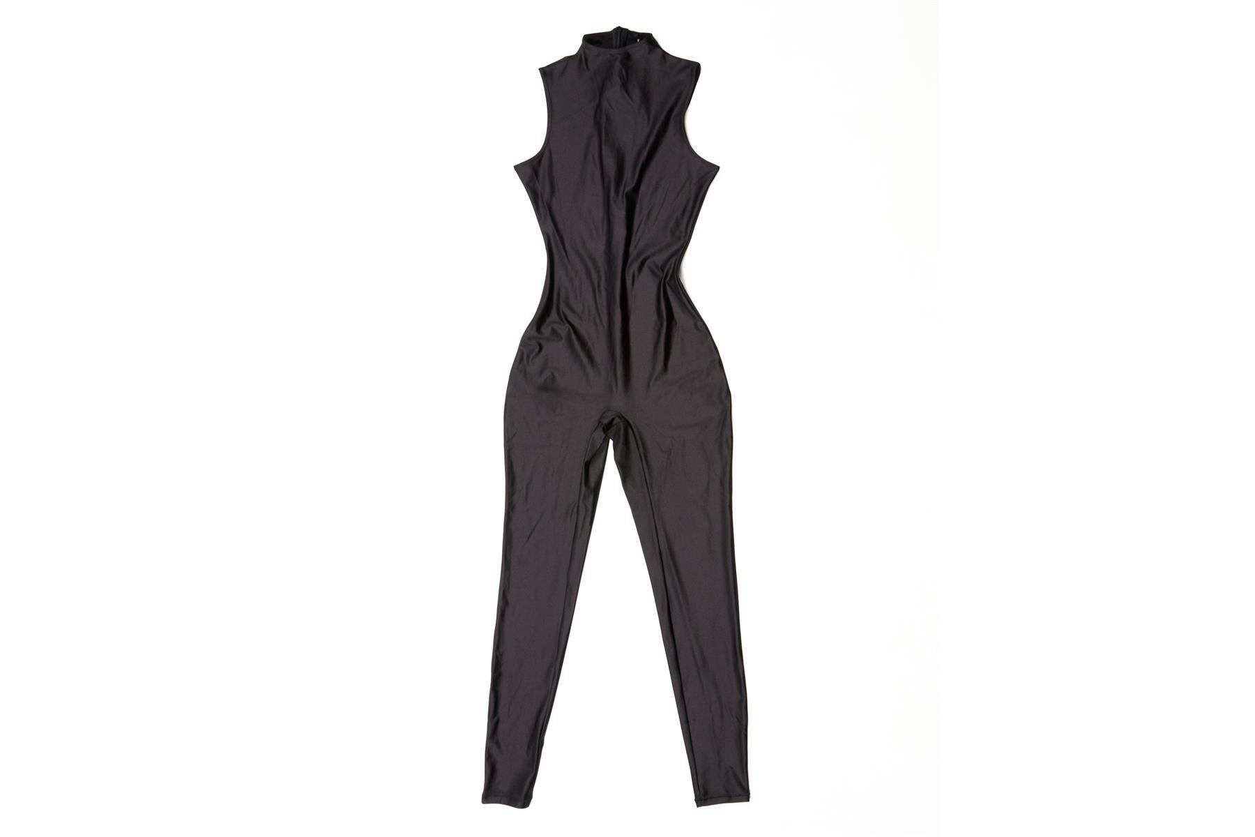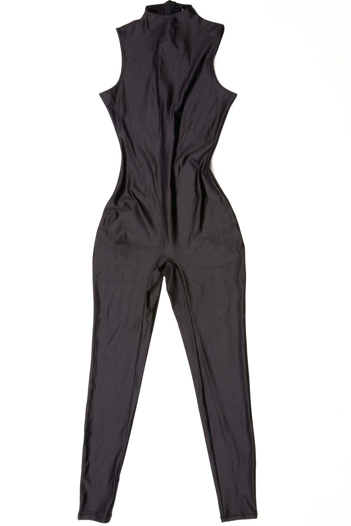 Skims Black Jumpsuit. Black. Sleeveless. Mock Neck. Zip fastening - Back. 82% Nylon, 18% Spandex. Small (UK 8, US 4, FR 36, IT 42). Bust: 29 in. Waist: 20 in. Hips: 31 in. Length: 53 in.