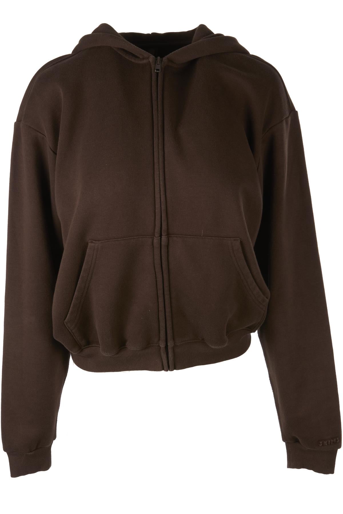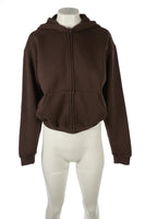 Skims Brown Cotton Hoodie. Brown. Long Sleeve. Crewneck. Zip fastening - Front. 70% Cotton, 30% Polyester. Medium (UK 10, US 6, FR 38, IT 42). Bust: 41 in. Waist: 40 in. Hips: 36 in. Length: 23 in.