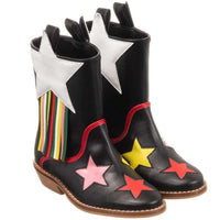 • Girls black cowboy boots from Stella McCartney Kids, made and lined in soft synthetic leather with a small heel.