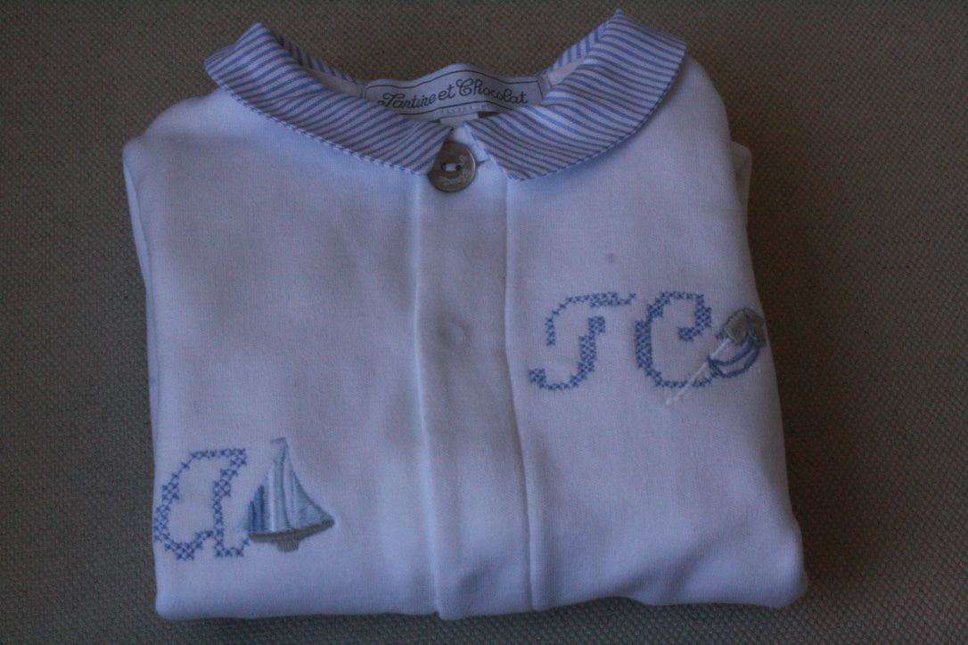 TARTINE ET CHOCOLAT BABY WHITE BLUE EMBROIDERY BABYGROW 3 MONTHS