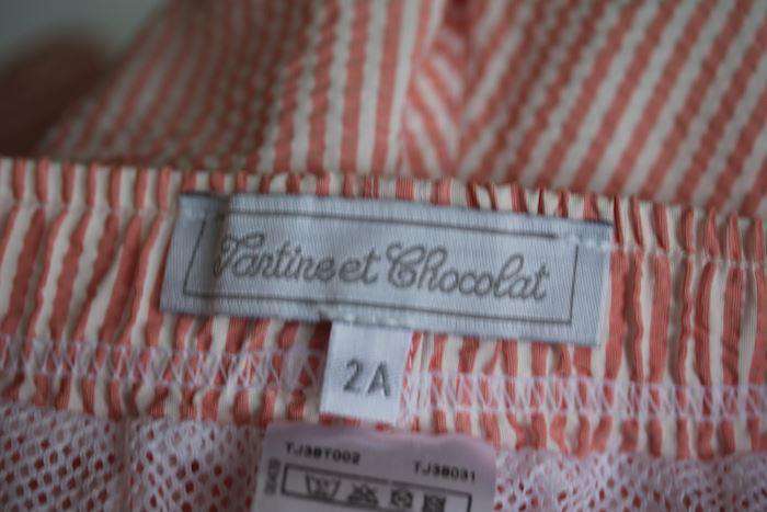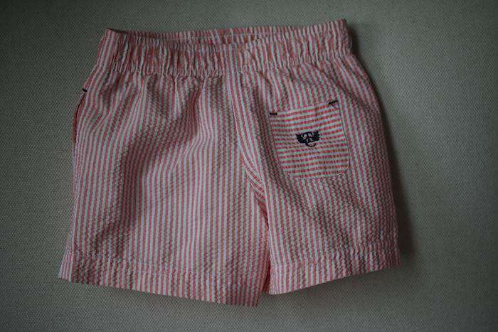 TARTINE ET CHOCOLAT PINK AND WHITE STRIPED SWIM SHORTS 2 YEARS
