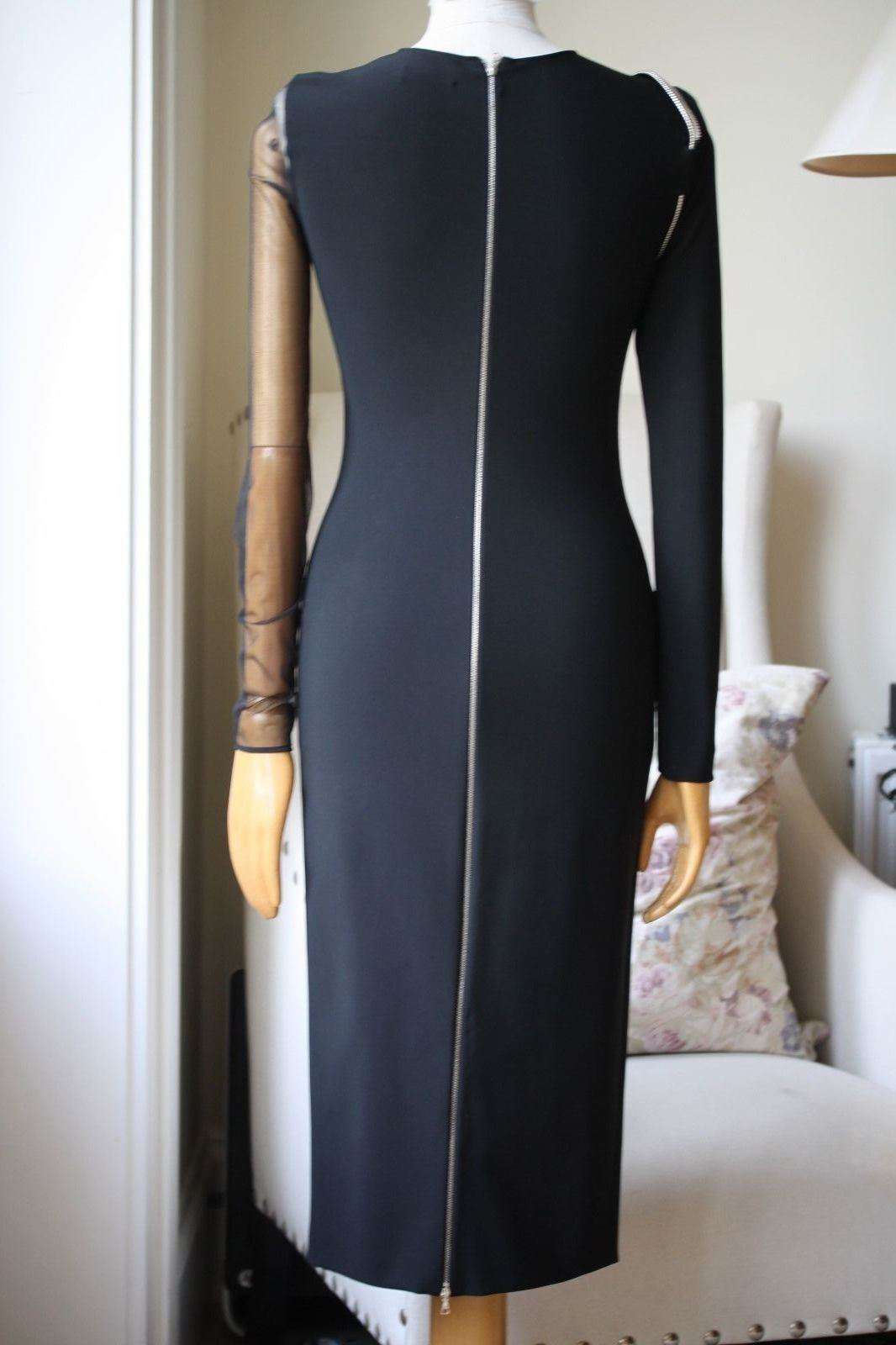 THIERRY MUGLER MESH PANEL CHAIN DETAIL STRETCH DRESS FR 36 UK 8