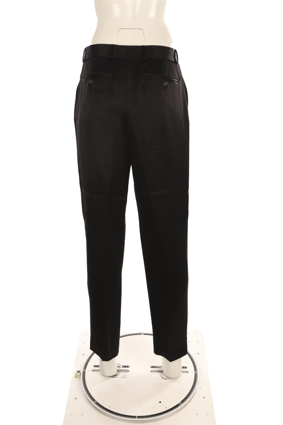 Toteme Black Satin Tapered Pants. Black. Hook, eye and zip fastening - Front. 100% Viscose. FR 36 (UK 8, US 4, IT 40). Waist: 32 in. Hips: 40 in. Length: 43 in. Inseam: 29 in. Rise: 14 in.