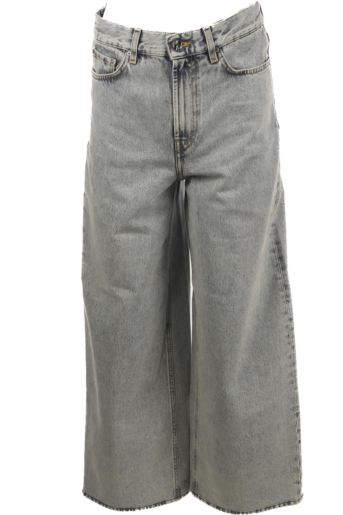 Toteme Blue High Rise Wide Leg Pants. Blue. Button and zip fastening - Front. 100% Cotton. W27 (UK 8-10, US 4-6, FR 36-38, IT 40-42). Waist: 28 in. Hips: 37 in. Length: 42 in. Inseam: 29 in. Rise: 13 in.