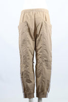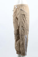 Adidas + Stella Mccartney Shell Track Pants. Beige. Tie fastening - Front. 100% Polyester. IT 40 (UK 8, FR 36, US 4). Waist: 40 in. Hips: 30 in. Length: 38 in. Inseam: 27 in. Rise: 12 in.