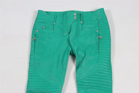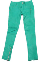 BALMAIN GREEN LEATHER SKINNY PANTS FR 38 UK 10