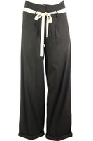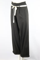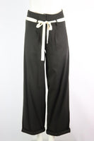 - Made from black stretch-crepe in a wide leg silhouette and contrast ribbon around the waist.