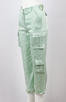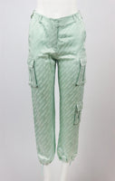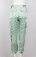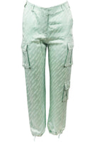 - These track pants by Off-White have been made in Italy from glossy satin-jacquard in a lovely and fresh mint hue, they're patterned with the brand's logo lettering and have ample cargo pockets.