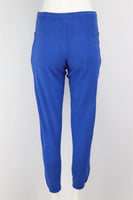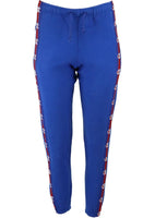 - Vetements has collaborated with Champion to create these blue track pants, they are cut from soft cotton-blend jersey and have a drawstring waistband with the brand's logo detail tape down the sides.