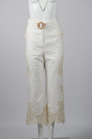 ZIMMERMAN BELTED LINEN WIDE LEG PANTS UK 12