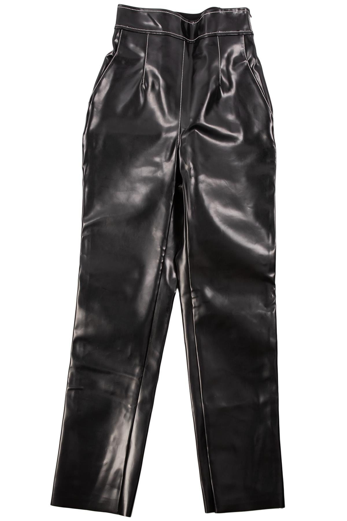 PHILOSOPHY DI LORENZO SERAFINI BLACK FAUX LEATHER STRAIGHT LEG PANTS IT 38 UK 6