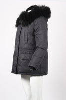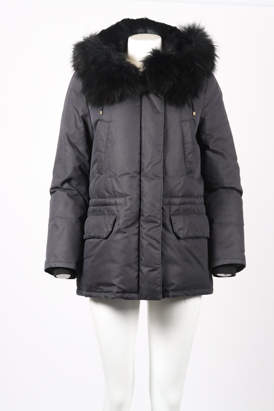 ARMY BY YVES SALOMON HOODED FUR AND COTTON JACKET FR 36 UK 8